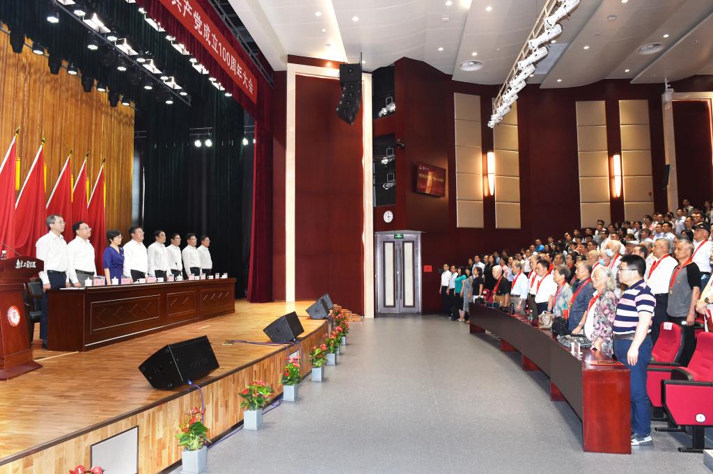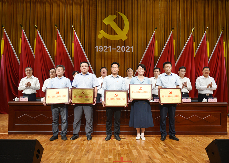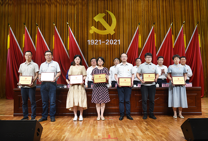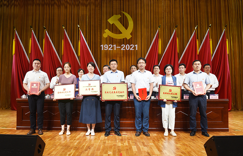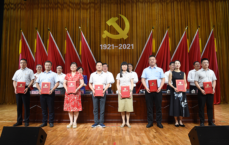 在充满喜庆气氛的音乐中,校领导依次为获得表彰的先进集体和个人颁发了奖牌和荣誉证书,并勉励受表彰的集体和个人要珍惜荣誉,再接再厉,进一步发挥基层党组织的战斗堡垒作用和共产党员的先锋模范作用,号召全校各级党组织和广大共产党员要以先进为榜样,坚守“为党育人、为国育才”的初心和使命。