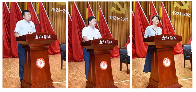 获奖集体代表、全省高校先进基层党组织,机械工程学院党委书记高成冲;获奖个人代表、全省高校优秀党务工作者,电力工程学院教工第三党支部书记陆旦宏;获奖集体代表、2019-2020年度全省高校党建工作创新二等奖获得单位,国际教育学院直属党支部书记蒋静先后在会上发言,畅谈经验,分享感悟。