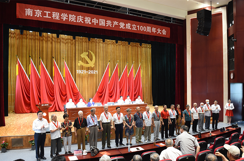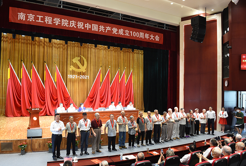 大会在雄壮的《中华人民共和国国歌》中拉开序幕。会上,党委副书记、副院长曹雪虹宣读了《关于颁发“光荣在党50年”纪念章的通知》;党委副书记濮励杰宣读了省委教育工委表彰文件;党委常委、副院长杨征宇宣读了beat365官方网站党委表彰文件。史国君书记、史金飞院长为99名党龄50年以上的老党员中的34位代表现场颁发佩戴了“光荣在党50年”纪念章;1个先进二级基层党组织、2个特色党支部、1名优秀党务工作者、1个党建创新项目、2个最佳党日活动荣获江苏省委教育工委表彰;5个先进二级基层党组织、15个先进党支部、5个特色党支部、72名优秀共产党员、8名优秀党务工作者、15个党建创新项目、25个最佳党日活动荣获学校党委表彰。