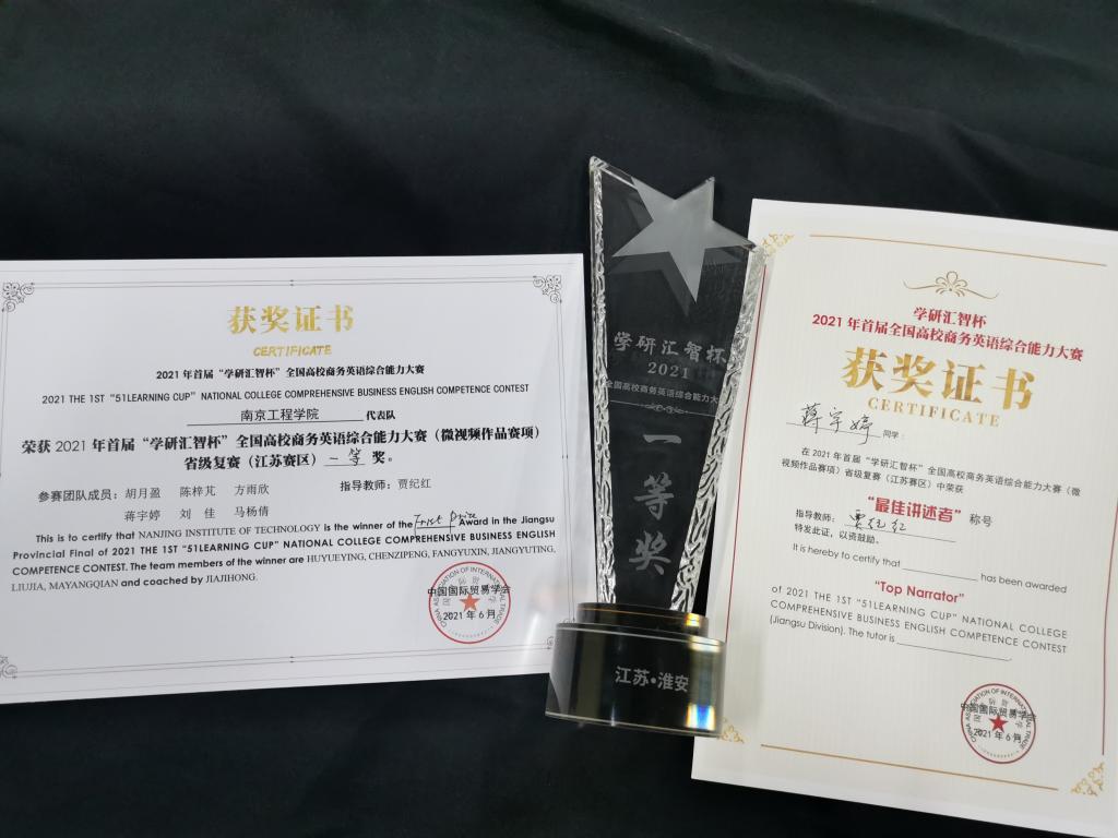 首届“学研汇智杯”全国高校商务英语综合能力大赛江苏赛区复赛于6月26至27日在淮阴师范学院举行,本届比赛由中国国际贸易学会主办,河海大学、南京理工大学等十余所高校参赛队入围省赛决赛。经过激烈角逐,beat365选派的“精益求精”队荣获江苏省一等奖,总分位列所有参赛队伍第二名,获得进入全国决赛资格。