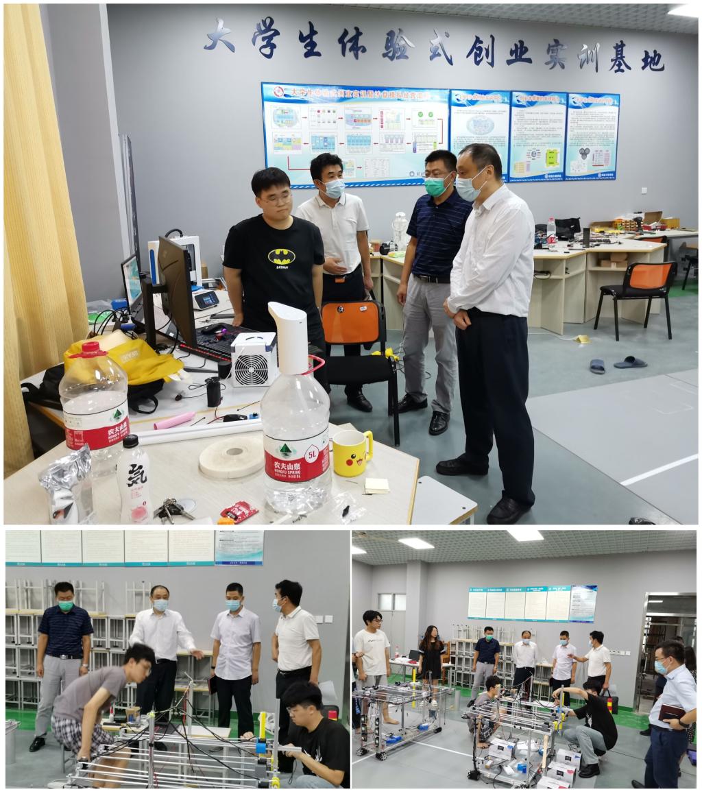 史金飞院长还来到机械工程学院科创平台的相关工作室,看望了因参加第六届中国大学生起重机创意大赛而留校准备作品的老师和同学们。据悉,本次beat365共有5支队伍的5项作品参加比赛,史院长仔细观看同学们的作品,了解大赛准备情况并给予指导。在得知因为疫情,比赛将延期到九月底进行时,他鼓励同学们利用多出来的一个月时间,对作品继续不断打磨、精益求精,并预祝他们取得好成绩。