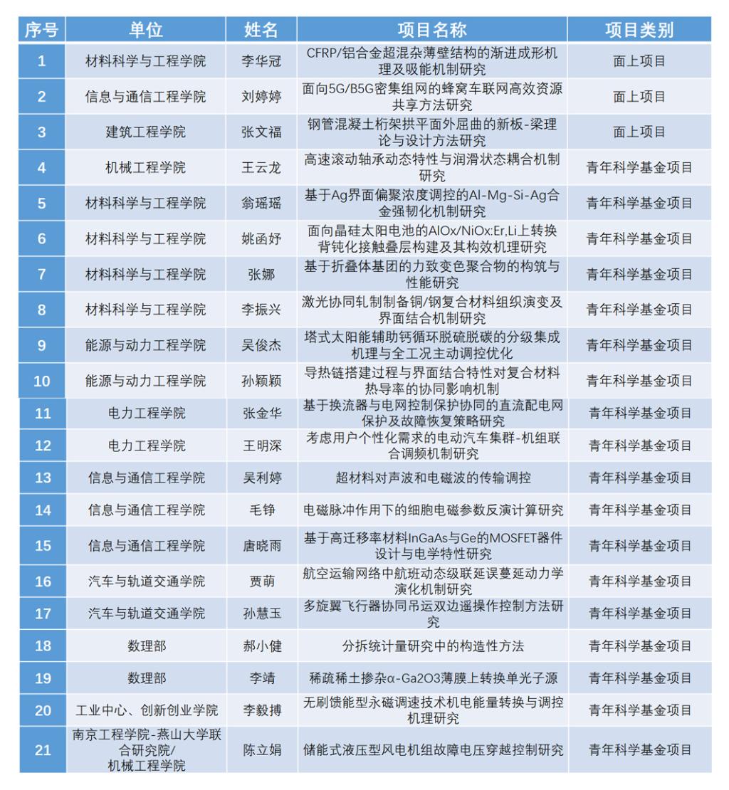近日,国家自然科学基金委员会发布了《关于2021年国家自然科学基金集中接收申请项目评审结果的通告》。beat365共有21个项目获得立项资助,其中面上项目3项、青年科学基金项目18项,直接经费资助总额605万元。获批数量和经费资助总额较前三年有明显提升。