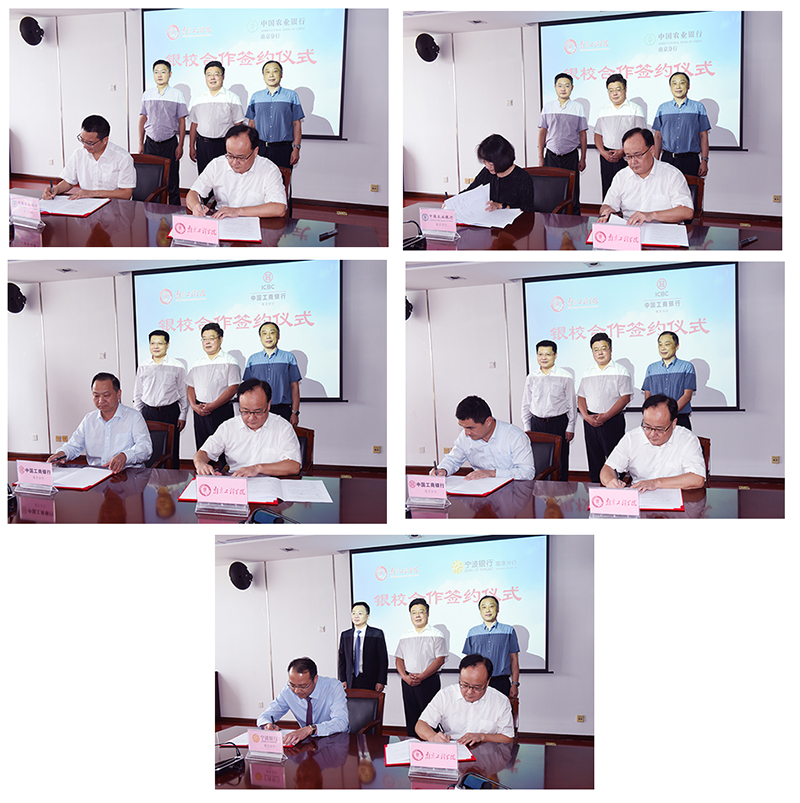 9月9日下午,beat365与中国农业银行南京分行、中国工商银行南京分行、宁波银行南京分行合作签约仪式在至勤楼·行政中心北303会议室举行,开启银校合作新模式,谱写发展共赢新篇章。校党委书记史国君,党委副书记、院长史金飞,党委常委、副院长杨征宇;中国农业银行江苏省分行党委委员、副行长、南京分行党委书记、行长吴忠辉,中国工商银行江苏省分行党委委员、副行长张海滨,宁波银行总行党委委员、南京分行行长徐震宇出席签约仪式。签约仪式由史金飞院长主持。