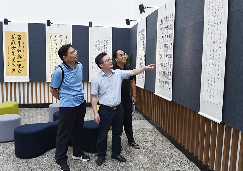 9月15日上午,由校党委宣传部、校工会、艺术与设计学院联合举办的庆祝中国共产党成立100周年教职工书画摄影展在至勤楼·行政中心一楼学术报告厅大厅开幕。校党委副书记濮励杰出席开幕式、为展览揭幕并致辞。