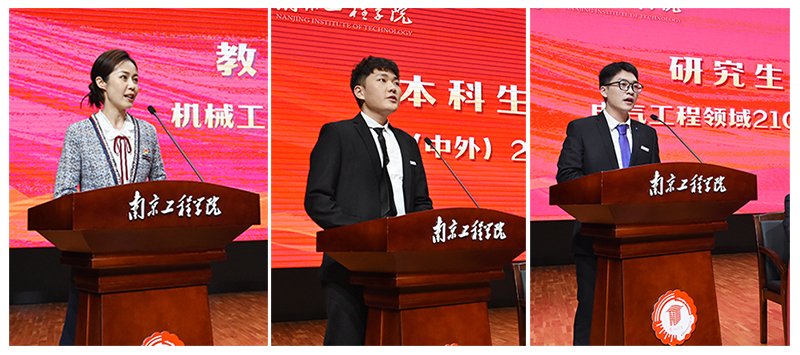 开学典礼上,机械工程学院郑璐恺老师作为教师代表发言。今天的青年生逢其时,也重任在肩。她勉励同学们在热爱与奋斗中,历练实现梦想的能力,磨砺百折不挠的毅力,大学四年努力做到心无旁骛求真求知,脚踏实地行稳致远。本科生新生代表、软工(中外)211班杨修远和研究生新生代表、电气工程领域2107班蒋天润在发言中说,能够相聚南工程,既是满心幸福的,又是充满挑战的。今后一定恪守“学以致用”的校训,发扬“知行统一,创业创新”的校园精神,志存高远,进取逐梦,努力成为实现中华民族伟大复兴的先锋力量。