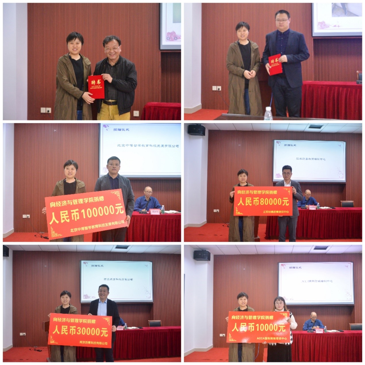 活动期间,南京宁庆数控机床制造有限公司、山东崇德精密机械有限公司、江苏顶晶融合新能源科技有限公司等校友企业与学校达成合作共建意向,即将签约产学研合作、捐赠合作等协议。经济与管理学院与北京中博智学教育科技发展有限公司、江苏财鑫教育培训中心、南京苏青科技有限公司、ACCA国际财经培训中心签署社会捐赠协议,艺术与设计学院与南京汇博晨飞艺术培训有限公司签署奖助学金协议。