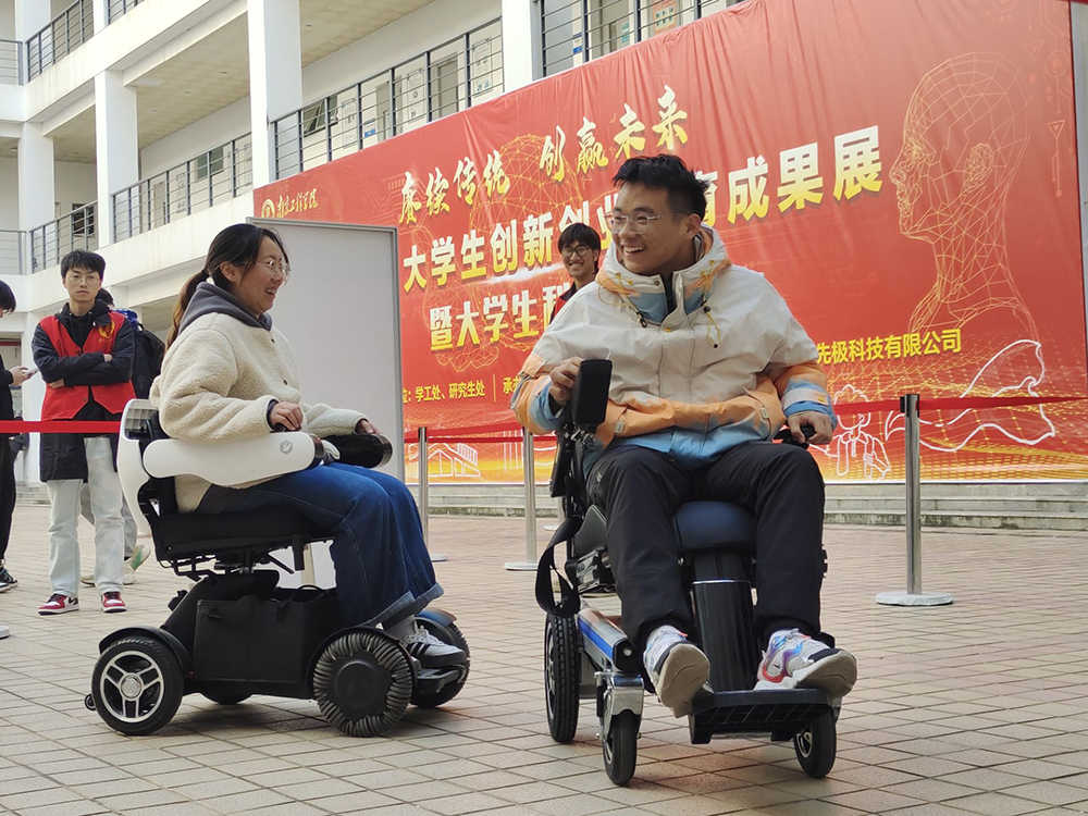 本次成果展主会场还特别展示了仿生四足机器人、韩博士科教机器人、水下机器人、越野机器人、空中机器人、智能轮椅等创新创业作品。特别是场上的三台仿生四足机器人形如一群活泼好动的大狗吸引了所有在场师生的目光,对其智能化的设计赞不绝口。韩博士科教机器人也深受在场师生的欢迎,纷纷与其拍照合影。