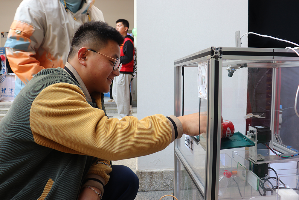 本次成果展共展出优秀创新项目作品105件、创业作品17件、论文56篇、优秀创新创业导师60名,展出的作品涉及机械、材料、电力、自动化、建筑、经管、艺术设计、人文等多个学科门类,较之往年,形式更加多样、成果水平更高、内容更加丰富。成果展会场吸引了众多师生的驻足观看,现场观众也与实物展示的团队进行了热烈交流。先进的理念和技术、新颖的展示素材,丰富的内容及成果,引起了大家极大地观展热情。汽车与轨道交通学院作品“泠风Racing方程式车队”致力于自主设计制造集稳定性、操控性、安全性于一体的小型高性能运动汽车;环境工程学院选送的作品“美丽乡村的‘膜’法盒——新型菌-自清洁”搭建以PVDF复合膜为核心的“抽屉式滤池+高效节能型水解酸化池+自清洁膜池”多级耦合的智能型模块化中水回用装置,各处理单元有机串联且将物理-生物-膜分离技术有效融合;计算机工程学院“芯光闪耀团队”选送的创业项目获得今年全国大学生“互联网+”创新创业大赛铜奖,参与该项目的软件191班郭二源同学在谈及收获时表示,想要参与创新创业的同学要有不怕挫折的精神,要主动与老师接触,了解老师的研究方向,老师们不仅会传授相关知识与经验,也有丰富的资源与平台与学生共享。
