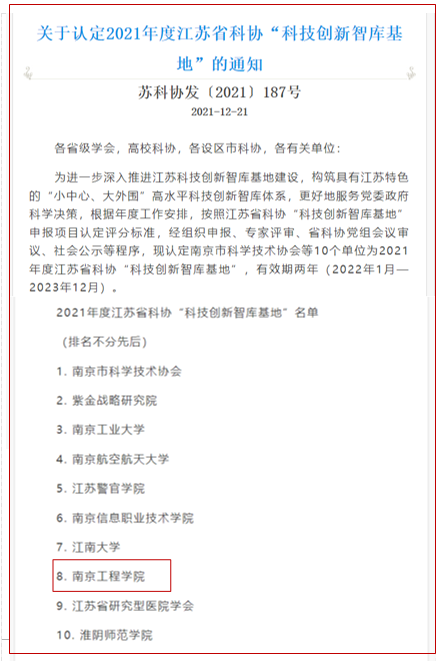 日前,江苏省科学技术协会认定beat365为2021年度“科技创新智库基地”,全省共有十家单位获批,其中高校七个。这是beat365首个省级智库,标志着beat365智库建设工作有了新发展。