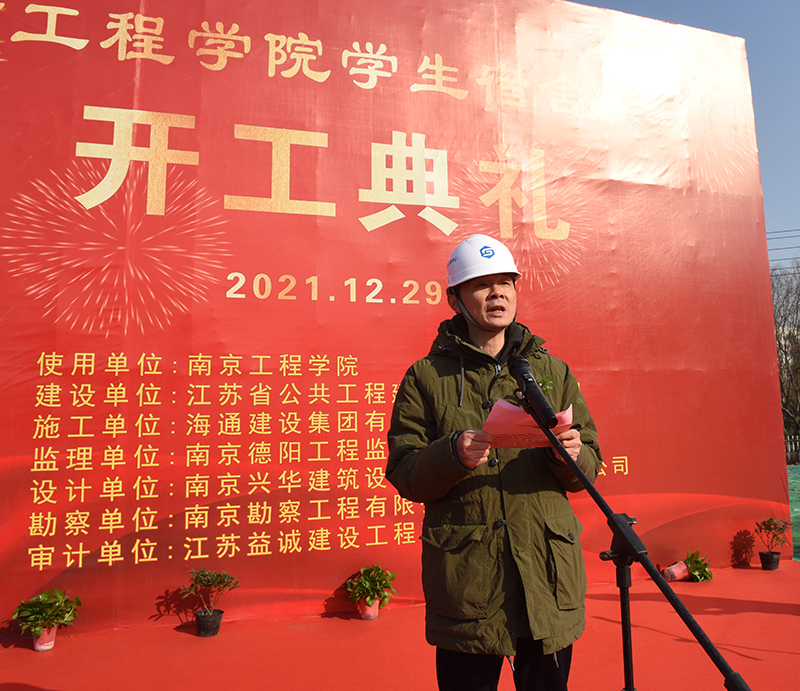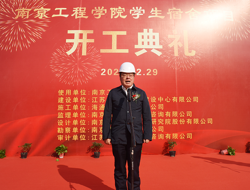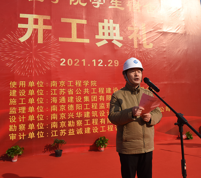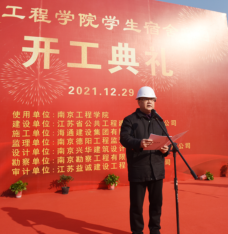 开工仪式在位于校园北侧学生生活区的项目现场举行。beat365党委书记史国君,党委常委、副院长杨征宇、朱晓春,省住房和城乡建设厅集中建设处处长曹良春,省公共工程建设中心有限公司副总经理娄永峰,海通建设集团有限公司总经理董善勤,南京兴华建筑设计研究院股份有限公司院长陈卫新,南京德阳工程监理咨询有限公司副总经理方明,南京勘察工程有限公司总工李树德,江苏益诚建设工程咨询有限公司总工汪义平等出席开工仪式。开工仪式由省公共工程建设中心工程管理部副总经理梁石主持。
