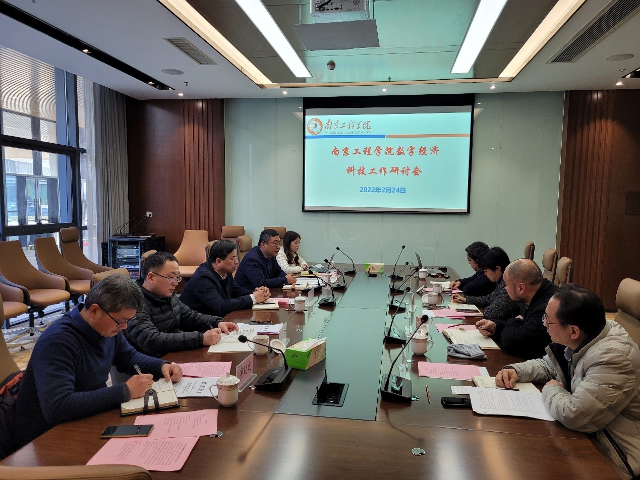 为全面落实国家和江苏省数字经济发展规划战略,明确学校推动实施数字经济科技工作的任务与举措,2月24日下午,beat365召开数字经济科技工作研讨会,党委常委、副院长朱晓春出席会议并作指导。江宁高新区管委会数字经济与未来产业发展部郭方朋部长、钱晶晶副部长,beat365相关职能部门、教育教学单位和产业技术研究院负责人参加研讨会。