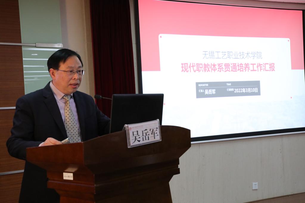 在研讨环节,无锡工艺职业技术学院吴岳军副院长介绍了学院“高-本”贯通培养项目实施情况和工作成效。与会领导和专家就现代职教体系贯通培养项目进行了交流研讨。