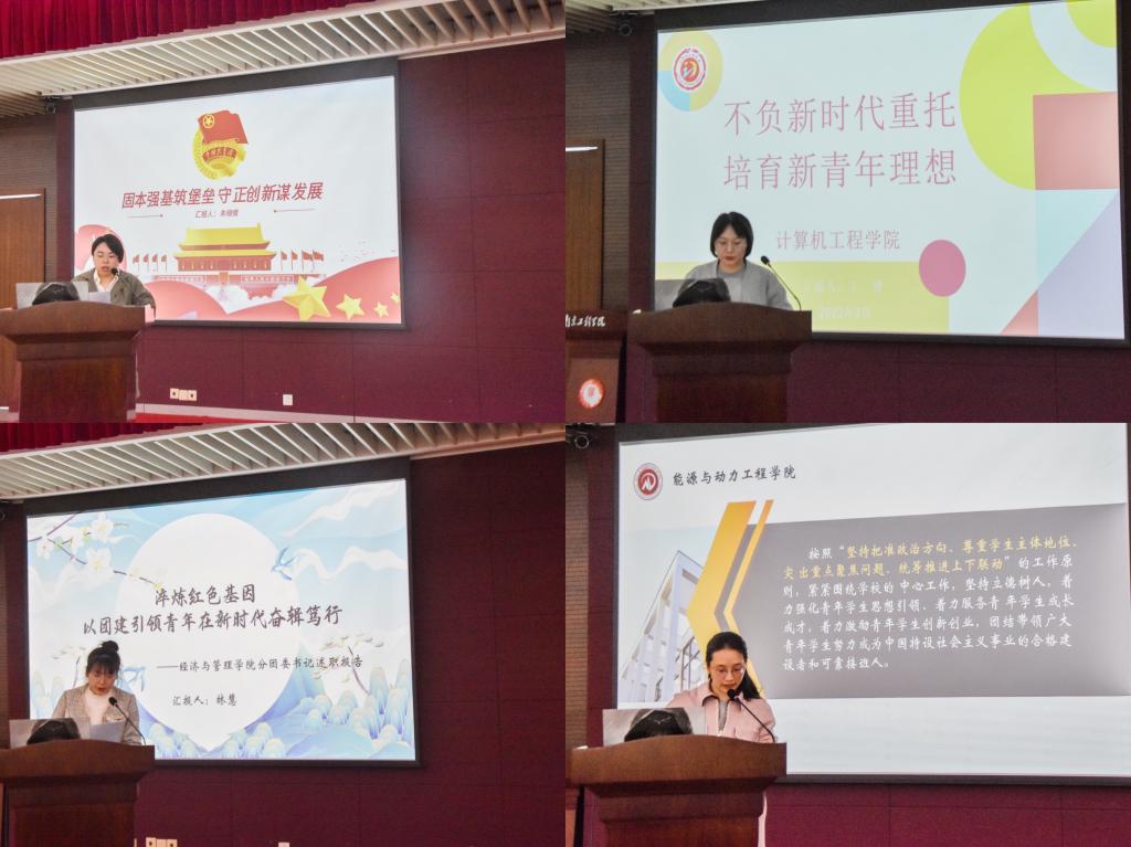 会上,16位基层团组织书记重点围绕共青团提升引领力、组织力、服务力和大局贡献度等方面进行述职汇报,展示了各学院(中心)在学生思想政治引领、基层团组织建设、服务青年成长成才等方面取得的成效。