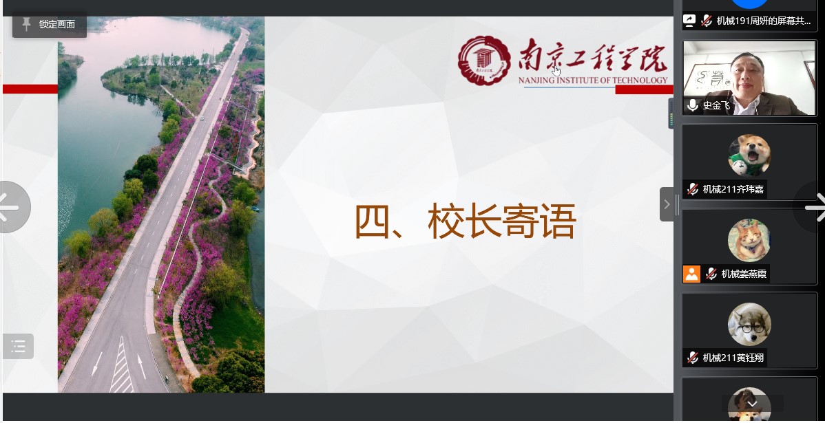 史金飞院长认真听取了同学们的发言并逐一点评,对大家在学习、科创、实践方面取得的成绩表示祝贺。“希望大家把疫情之‘危’转为发展之‘机’,养成‘自律、自护、自修’的良好习惯,不断提升综合素养,做到德智体美劳全面发展。”班会最后,史院长这样勉励同学们,“相信经过疫情考验的青年一代,一定能传承伟大抗疫精神,在青春的赛道上不惧风雨、勇挑重担。”