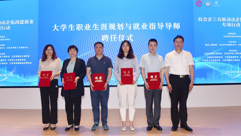 活动中,学生工作处、机械工程学院、电力工程学院、信息与通信工程学院、计算机工程学院、建筑工程学院、汽车与轨道交通学院、工业中心负责人分别与江苏省学会服务中心、南京高精齿轮集团有限公司、常州是为电子有限公司南京分公司、江苏十方通信股份有限公司、国信蓝桥教育科技(杭州)股份有限公司、中车南京浦镇车辆有限公司、江苏南京地质工程勘察院、南京汽轮电机(集团)有限责任公司签订共建毕业生就业基地协议。