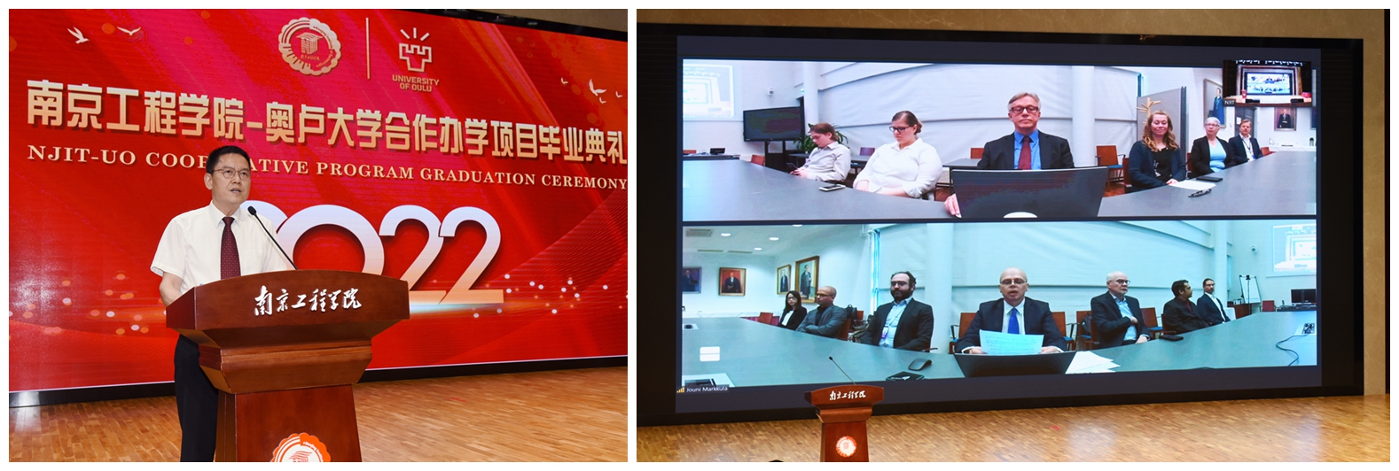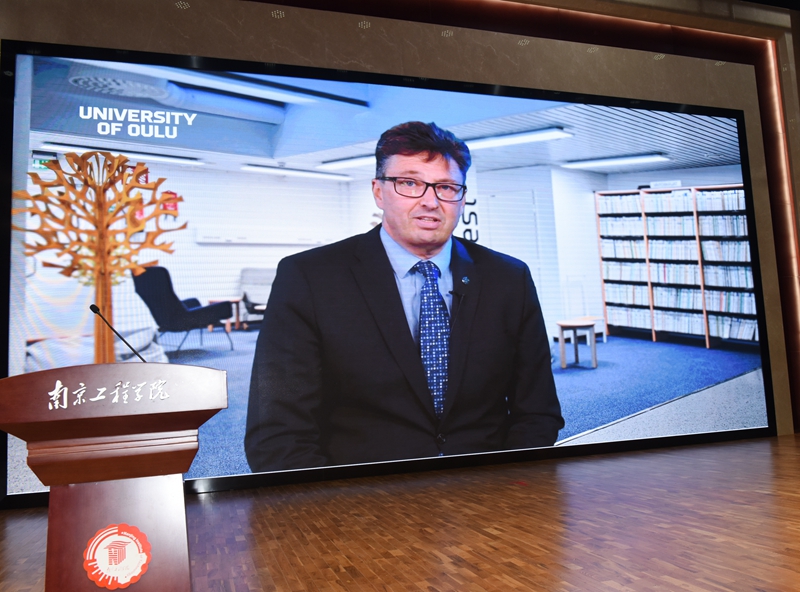 芬兰奥卢大学尼尼玛奇校长以视频致辞的方式寄语毕业生,他对中芬合作办学项目首届学生克服疫情影响,顺利完成学业表示祝贺。他指出,作为第一个中芬双学位项目,同学们体验了芬兰式教育,见证了中芬教育合作的发展。他希望中芬合作班的同学们充分发挥良好教育给予自己的力量,挑战自我,未来不仅能够创造美好的职业生涯,也能够为中芬两国进一步的沟通和合作起到纽带作用。