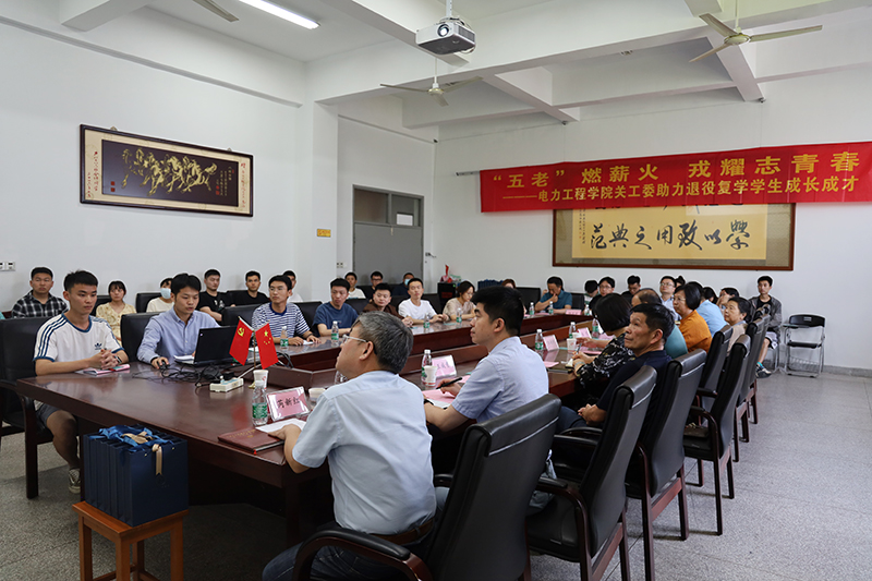 “两年军旅生涯难能可贵,不仅让大家练就了强健的体魄,也让敢想、敢干、敢拼的精神将贯穿你们的终生。”电力工程学院关工委常务副主任王成贵结合自身从戎经历,勉励同学们要永葆军人本色,坚守从戎初心,发挥聪明才智,争取为校争光。该院关工委常务副主任毛晓桦老师表示,“电力工程学院是一个温暖的‘退役复学军人之家’,几年里扎实的工作开展,把退役复学学生培塑成才,让强国强军之风走进校园,为学校国防教育增添新名片。”