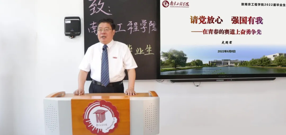 芒种时节,栀子花开,天印湖畔再次奏响离别的笙歌。又一批毕业生同学即将带着熔炼四年的专业能力走出校门,奔赴人生的新征途。临别的行囊里,除了四年来的收获,还有着师长们的深情厚意。近日, 校党委书记史国君温情开讲,录制《请党放心 强国有我 在青春的赛道上奋勇争先》毕业思政课,为即将离开校园的2022届毕业生送上临别的赠言和对未来的期许。
