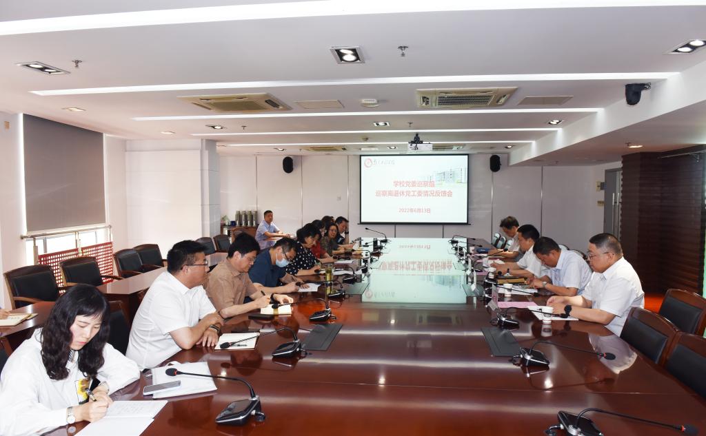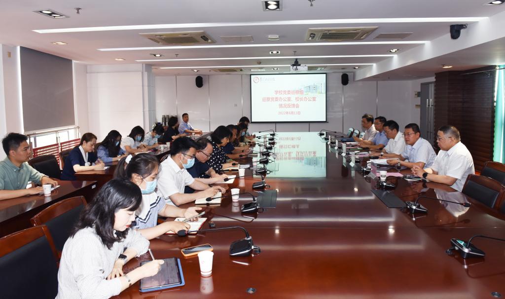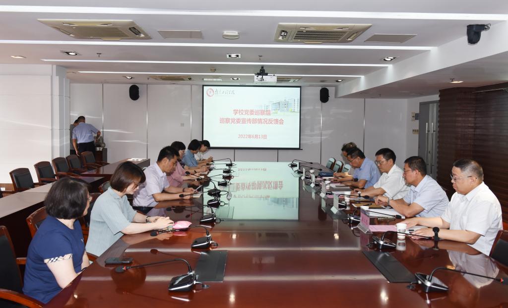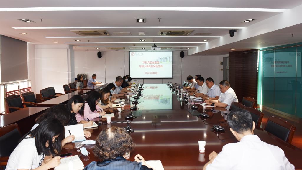 根据学校党委巡察工作统一部署,6月13日上午,学校党委第七轮巡察组分别向党委办公室(校长办公室)、党委宣传部、人事处(党委教师工作部、人才工作办公室)、离退休党工委、国际教育学院党总支等5家单位反馈巡察情况。校党委副书记、巡察工作领导小组副组长濮励杰出席会议并讲话,校党委常委、纪委书记(监察专员)、巡察工作领导小组副组长、第七轮巡察组组长赵立法向被巡察单位通报巡察情况,校纪委副书记程国方出席会议,各被巡察单位主要负责人主持会议并作表态发言。