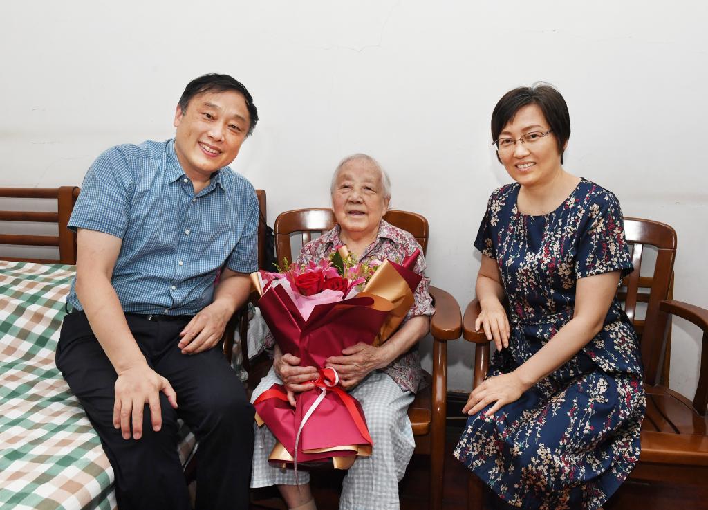 毛奉仙是beat365第四位百岁老人。在毛奉仙老师家中,校领导为老人家送上鲜花和慰问金,祝福老人寿诞快乐,春辉永绽。史金飞院长代表全体师生向毛老表示热烈的祝贺。他说,像毛老这样的高寿老人不光是家中一宝,更是学校的宝贵财富,学校的老领导、老教师、老同志们为学校的建设奠定了坚实的基础,见证了学校事业跨越式发展。学校会一如既往地给予他们更多的关心和照顾,让老人们安享晚年,顺心幸福,这也是学校离退休工作的重要一环。史院长还向毛老介绍了学校事业发展情况,他表示,2022年是学校落实第三次党代会精神和“十四五”规划目标任务的关键之年。学校将紧紧围绕学校“十四五”事业发展规划确定的目标任务,以立德树人为根本,以学科建设为龙头,坚持内涵发展、特色发展、创新发展,切实扛起“争当表率、争做示范、走在前列”的光荣使命,争当全国应用型高校的“领头羊”“排头兵”,为谱写“强富美高”新江苏现代化建设新篇章做出新的更大贡献,以实际行动迎接党的二十大胜利召开。