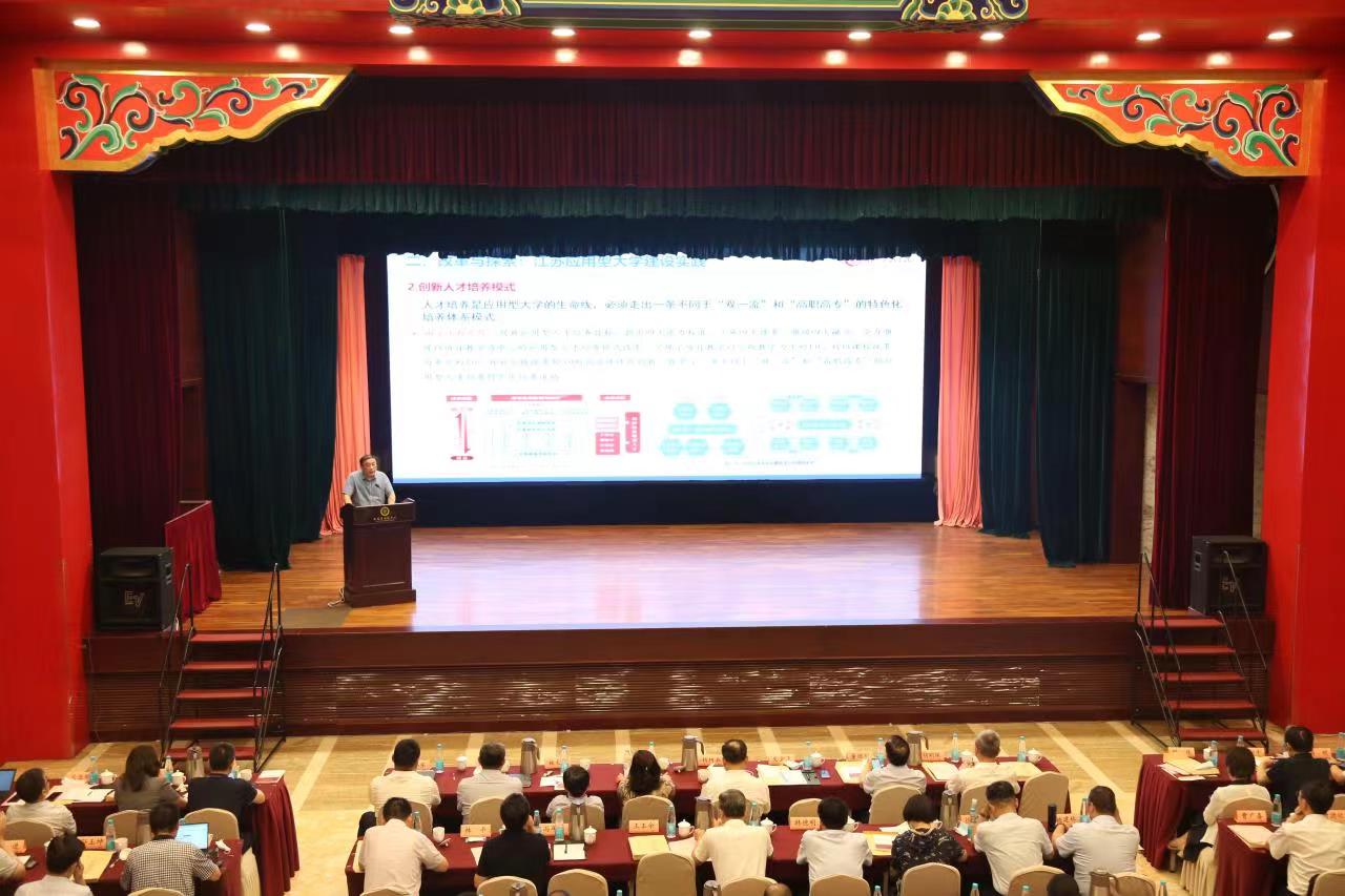 beat365党委副书记、院长史金飞受教育厅邀请,在会上做了题为“改革创新、踔厉奋发,打造一流应用型大学建设江苏高地”的专题报告。该报告是基于省教育厅指导支持,由beat365作为主要牵头和组织单位承担的省重大委托专项课题“江苏省一流应用型大学建设重点与实施策略”研究情况的全面总结与成果展示。报告分为“历史与演进:江苏一流应用型大学建设基础;改革与探索:江苏一流应用型大学建设实践;示范与引领:江苏一流应用型大学建设标准”三个部分。史院长通过国际比较和历史考察的维度,通过借鉴分析经济和高等教育发达国家应用型高校的建设经验,将我国自上世纪90年代以来的应用型大学建设划分为“探索、转型、提升”三个阶段,指出:江苏作为“应用型本科人才”的首倡地,高度重视应用型高校建设,为全国应用型高校的建设、改革与发展做出了重要引领与示范。进入新时代后,在国家的大力引导和政策支持下,江苏省面对兄弟省份的奋起直追,通过“建组织、深调研、定政策、出措施、定标准”,全力推动我省一流应用型大学建设加速度、提水平。在省教育厅正确指导下,我省应用型高校贯彻新理念、实施新改革、探索新路径、推动新发展,涌现出一批先进经验,探索了应用型大学发展的江苏新模式。史院长还向全体与会人员详细介绍了由beat365执笔起草的“江苏一流应用型大学建设标准”基本思路与主要内容,希望通过明确标准体系,为我省一流应用型大学领航定向,发挥示范引领作用,推动我省应用型大学高质量发展和特色发展,继续为全国同类高校发展提供江苏智慧和江苏方案。