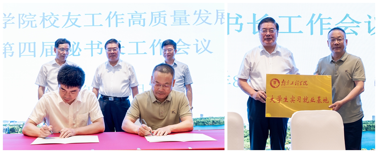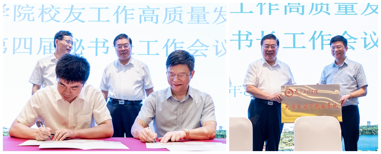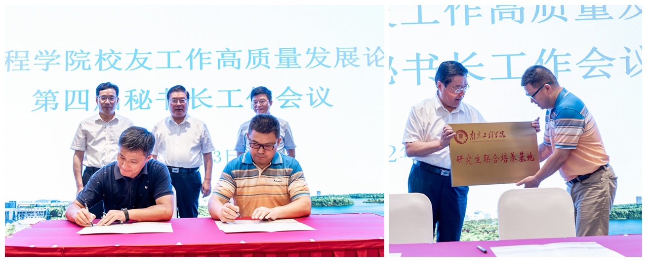 在全体与会人员的共同见证下,学校与无锡亿能电力设备股份有限公司签订研究生联合培养基地协议,与无锡鹏德汽车配件有限公司、无锡浦新金属制品有限公司签订实习与就业基地协议,史国君书记为合作企业颁授铜牌。