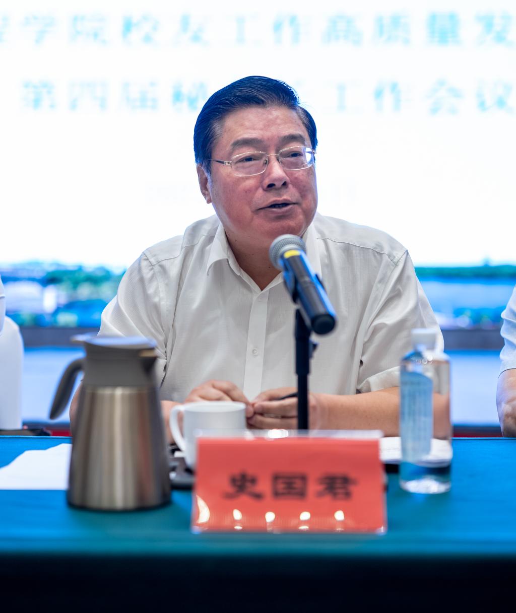 会上,史国君书记代表学校向全体校友对学校校友工作的辛苦付出表示衷心感谢,同时对各校友组织的工作成效给予充分肯定。他说,当前学校正积极落实上级领导视察学校时提出的“争当全国应用型高校‘领头羊’‘排头兵’”的指示要求,以“十四五”事业发展规划为统领,以“申博扩硕升大学”为目标,聚焦内涵建设和特色发展,不断提升学校综合实力和办学水平,全面开启建设“特色鲜明的一流应用型工程大学”的新篇章。史书记指出,校友对于扩大母校与社会的联系、增强学校的凝聚力和影响力、争取更多发展资源具有重要作用,他希望各校友组织一是充分发挥“服务奉献”精神,以服务为宗旨、以情感为纽带促进各地校友联谊会的工作开展,持续打造校友与母校“命运共同体”;二是不断强化“统筹协调”作用,规范推进地区校友联谊会组织、制度、文化建设,规范有序、积极稳妥地推进校友会工作开展,把联谊会建设成为广大校友的精神家园;三是立足“互利多赢”,以加强校友与母校之间的交流合作为中心,服务校友、服务母校,推动母校与地区及企业间的产学研合作和母校科研成果向现实生产力转化,积极为争取社会各界特别是校友对学校发展的支持牵线搭桥。