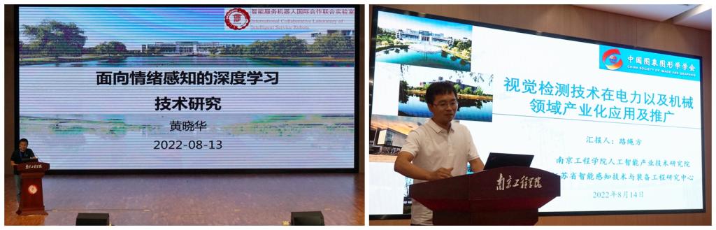 会议围绕视觉检测与特色行业融合共进展开讨论,清华大学邢飞教授、北京航空航天大学李波教授、南京理工大学柏连发教授、北京航天计量测试技术研究所缪寅宵研究员等知名专家学者为与会人员做高水平特邀学术报告25场。beat365计算机工程学院副院长(主持工作)黄晓华教授受邀做“面向情绪感知的深度学习技术研究”报告,人工智能产业技术研究院路绳方副教授做“视觉检测技术在电力以及机械领域产业化应用及推广”报告。