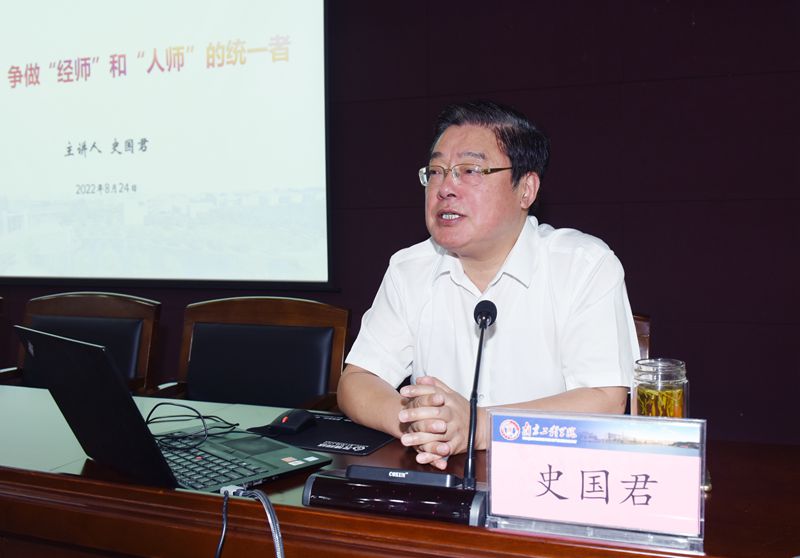 习近平总书记在中国人民大学考察时强调,培养社会主义建设者和接班人,迫切需要我们的教师既精通专业知识、做好“经师”,又涵养德行、成为“人师”,努力做精于“传道授业解惑”的“经师”和“人师”的统一者。如何理解“经师”和“人师”?新时代的高校思政工作者如何成长为“经师”和“人师”统一者?8月24日上午,校党委史国君书记以“辅导员:争做‘经师’和‘人师’的统一者”为题,为参加2022年学生工作研讨会的全体学工队伍成员做专题报告。