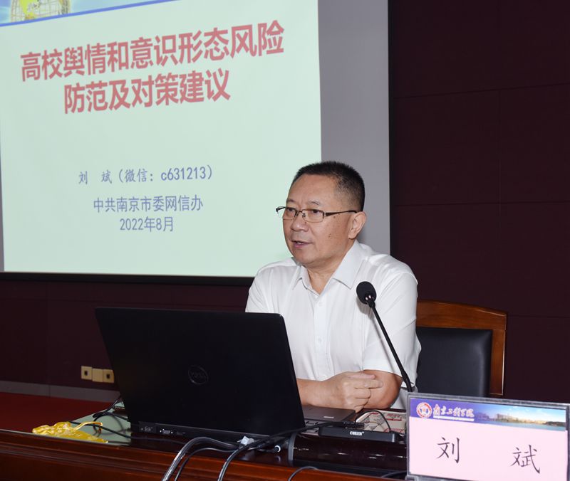 25日上午,南京市委网信办副主任刘斌以《高校舆情和意识形态风险防范及对策建议》为题,详细梳理了当前高校意识形态问题的突出表现,深入分析了高校网络舆情特点,并结合大量的高校舆情真实案例,对于应对高校舆情从理论和实践层面都进行了详细的论述和精辟的分析,并就如何加强高校网络舆情引导、如何善用媒体等提出了建议。