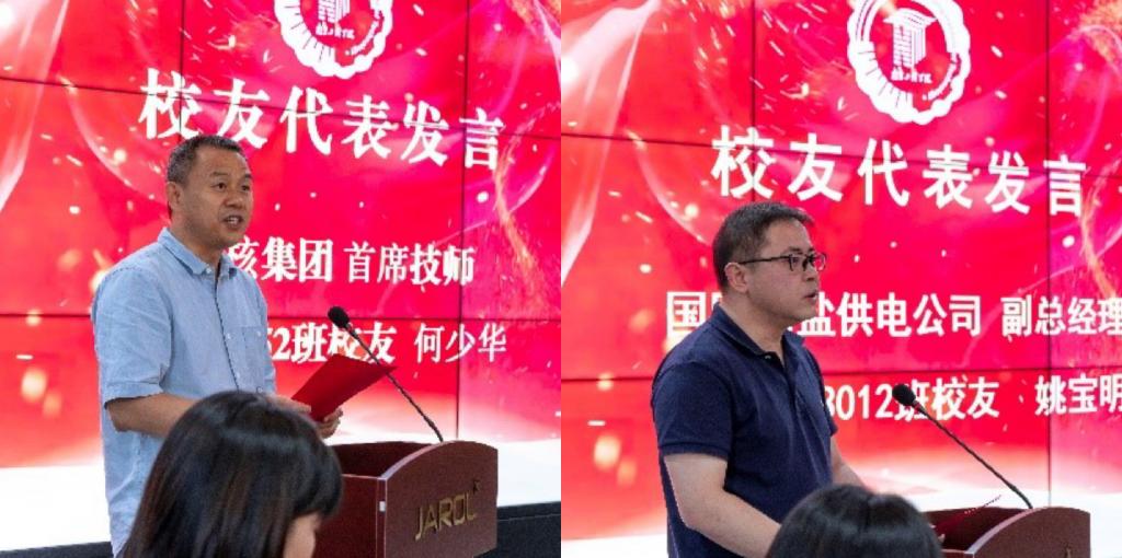 机械9352班校友何少华、输电Z063012班校友姚宝明作为校友代表先后上台发言。他们感恩母校的教育和培养,并表示成立嘉兴校友联谊会是他们期盼已久的心愿,今天如愿以偿,倍感激动与喜悦。他们将以校友联谊会这个新平台为桥梁,相互勉励,相互支持,携手并肩,为母校的发展献计尽力,共创美好的未来。