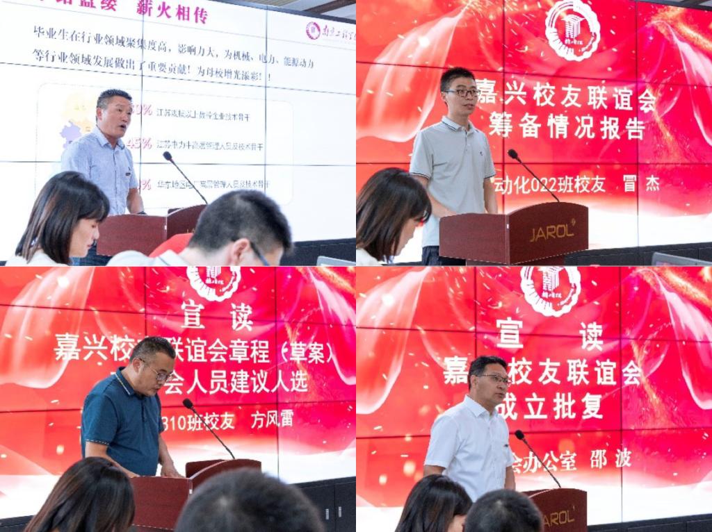 会上,校友会办公室向校友们介绍了学校的办学历程以及近年来学校事业改革发展所取得的突出成绩,并就学校“十四五”规划及2035年远景目标纲要的主要内容作汇报说明。嘉兴校友联谊会筹备组、自动化022班校友冒杰汇报了嘉兴校友联谊会筹备情况,控9310班校友方风雷介绍了《嘉兴校友联谊会章程(草案)》、嘉兴校友联谊会理事会组成人员建议人选报告。beat365校友会办公室负责人宣读了《关于同意beat365官方网站嘉兴校友联谊会成立的批复》。