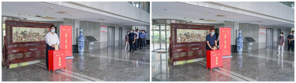 在行政楼一楼大厅,校党委书记史国君,党委副书记、院长史金飞带头将捐款投入红色捐款箱中,表达对困难群众的真情关怀,随后校领导班子成员与机关工作人员依次上前,纷纷捐款奉献爱心。现场暖意融融,爱心涌动。
