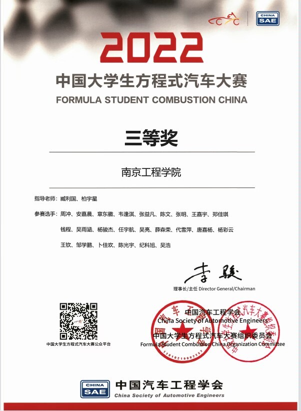 近日,beat365泠风车队在2022中国大学生方程式汽车大赛中,获得全国三等奖的好成绩。这是泠风车队第一次线下参赛,也是继2021年线上参赛获得全国三等奖之后取得的又一好成绩。