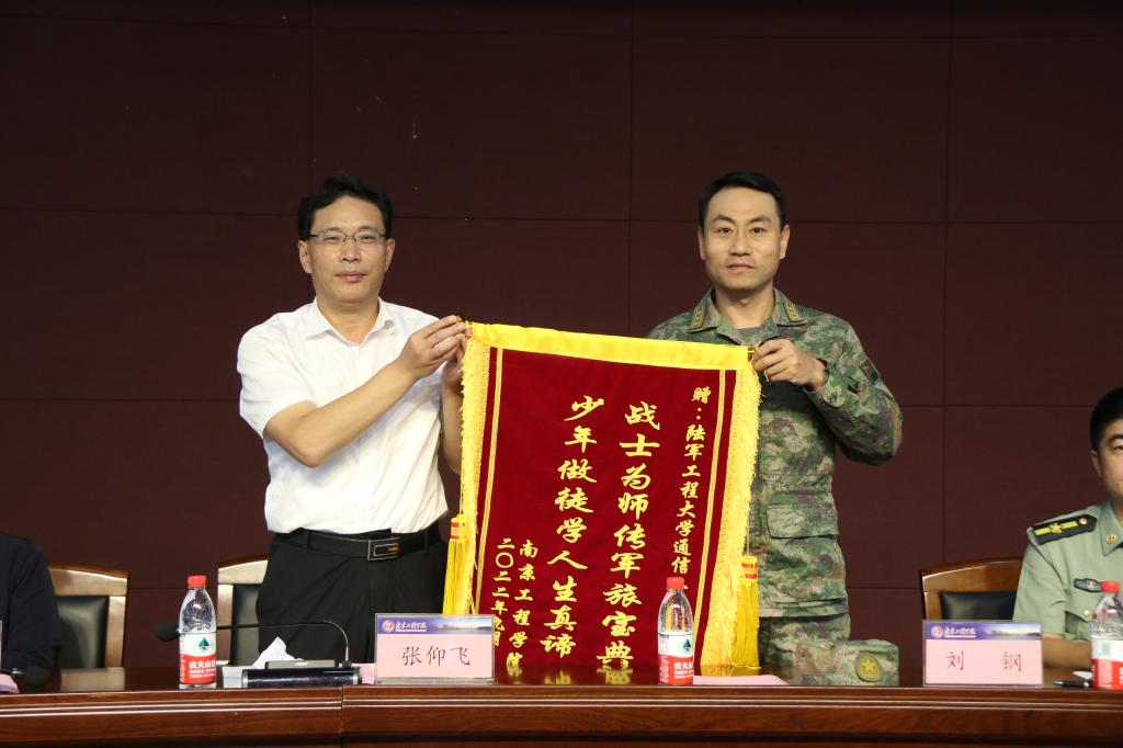 会上,张仰飞副院长向承训单位赠送锦旗并致辞。他代表学校向承担本次学生军训工作的全体指战员和各学院(中心)为军训工作辛勤付出的老师表示衷心感谢,向在军训中受到表彰的先进集体和个人表示热烈祝贺。他强调,同学们在军训过程中接受了生动的爱国主义教育,身心得到了成长,这既来源于同学们的刻苦训练、勇于拼搏,更得益于承训单位及上级部门的关心指导、各位教官的辛勤工作。2022级学生军事技能训练达到了预期的目标,取得了可喜的成绩。