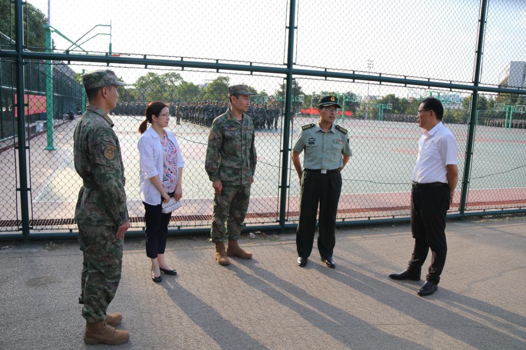 军训期间,张仰飞副院长先后陪同中国人民解放军陆军工程大学常委、教务处处长黄强年大校,陆军工程大学通信工程学院政委夏俊大校来到2022级新生军训现场指导工作。检查组领导对学校军训工作给予了充分肯定,并向承训的教官、连队指导员以及跟训的辅导员老师表示感谢,对现场参训的学生予以鼓励,希望同学们养成良好的学习和生活习惯,为今后的大学生活打下良好的基础。