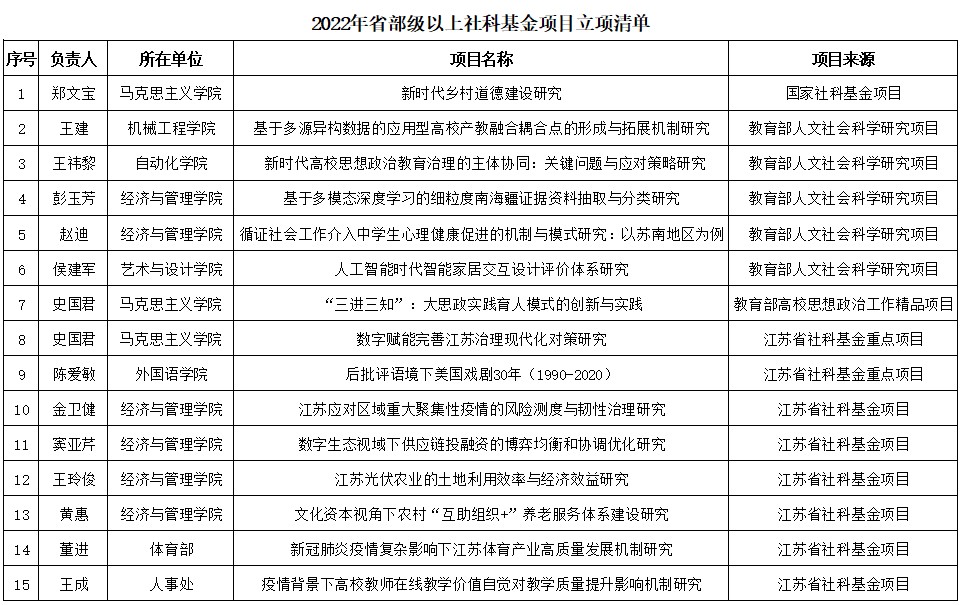 近日,国家级、省部级社科基金项目立项情况相继公布,beat3652022年省部级以上社科基金项目立项取得佳绩。截至2022年9月,beat365共获批省部级以上高水平社科项目15项,其中国家社科基金项目1项,省部级社科基金项目14项,获批项目数量创历史新高。