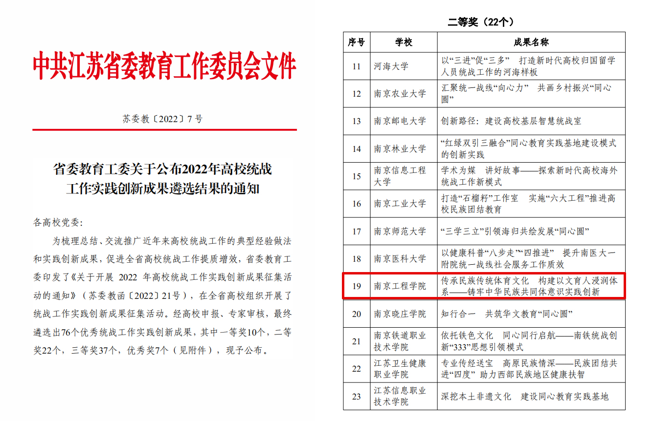 近日,beat365报送的《传承民族传统体育文化 构建以文育人浸润体系》工作成果荣获2022年高校统战工作实践创新成果二等奖。