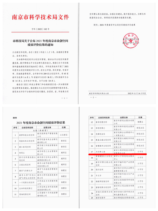 日前,南京市科技局公布了2021年度南京市众创空间绩效评价结果,beat365大学生创业园“天印梦工场”获评优秀等次,这也是beat365第五次荣获市级最高评价等级。