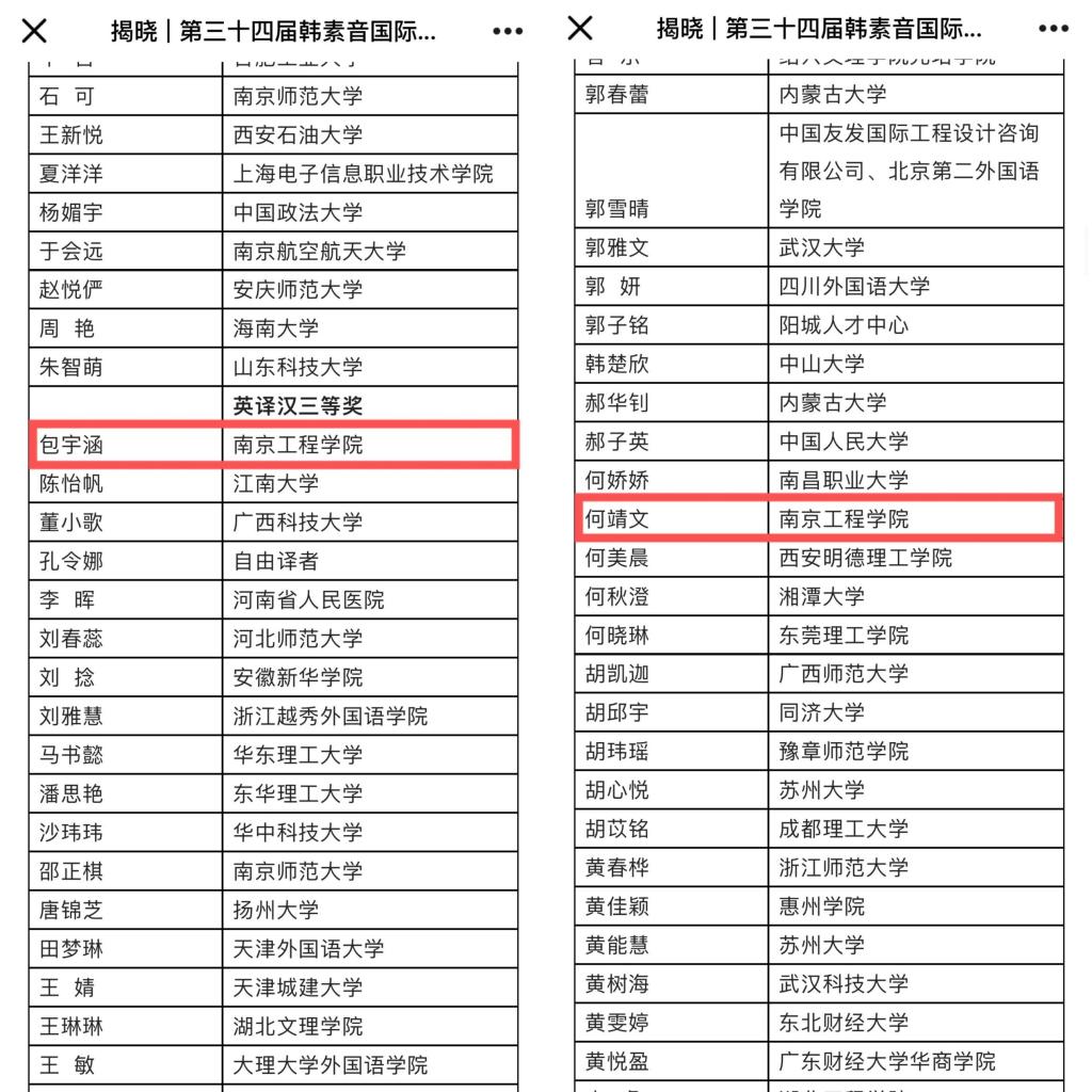 11月16日,第三十四届韩素音国际翻译大赛获奖名单公布,beat365外国语学院商务英语192班包宇涵和商务英语201班何靖文分别荣获英译汉组三等奖和优秀奖。