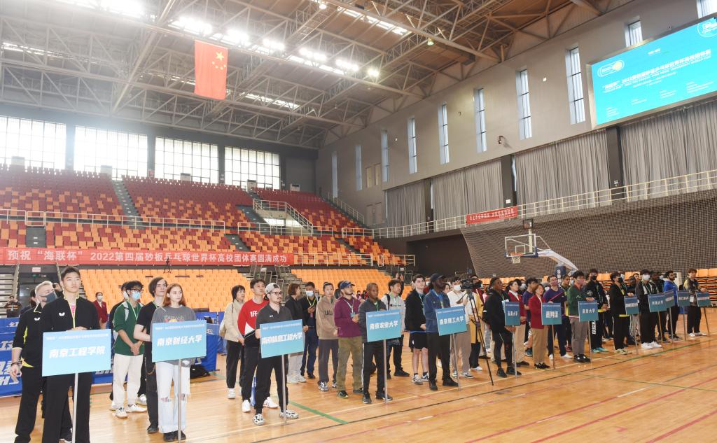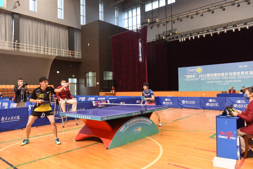 11月26日至27日,“海联杯”2022第四届砂板乒乓球世界杯高校团体赛在学校体育中心主馆正式开赛。此次赛事由江苏省海外联谊会、江苏省体育总会、江苏省友协共同主办,来自15所高校的近50名运动员组队参赛,其中包括19名外籍选手。