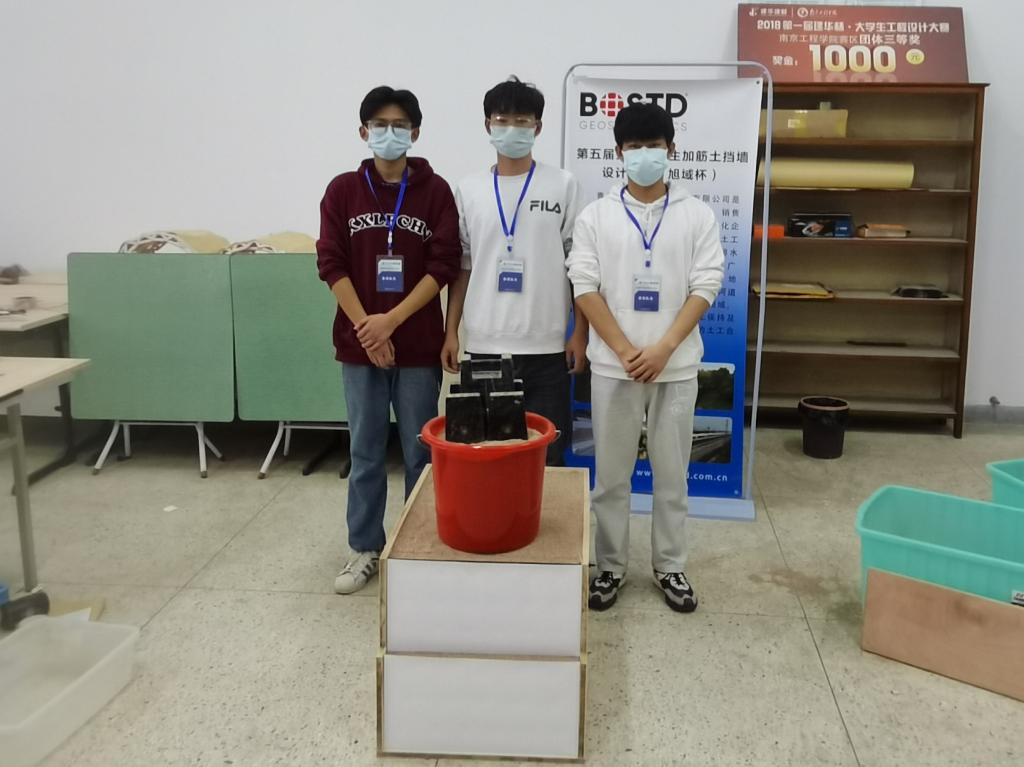 11月26-27日,由中国土工合成材料工程协会主办,青岛理工大学承办的第五届全国大学生加筋土挡墙设计大赛以线上、线下相结合的形式举行。beat365建筑工程学院姜景山副教授指导的悦波程队(队长:建工203朱兆悦,队员:建工201胡波、建工201彭程)荣获一等奖;共进队(队长:建工203王楷焘,队员:交通201邱天赐、建工201顾俊)设计的模型作品荣获二等奖。