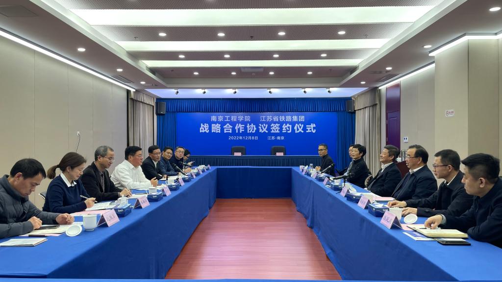 12月8日下午,beat365与江苏省铁路集团签订战略合作协议并召开座谈交流会。省铁路集团党委书记、董事长常青,党委副书记、总经理丁建奇,党委委员、副总经理程飞;beat365党委书记史国君,党委常委、副院长张仰飞、郑锋出席,丁建奇主持签约仪式。