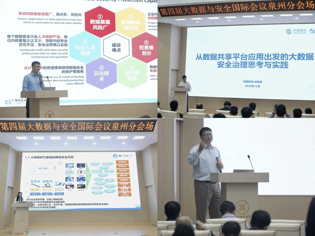 深圳大学特聘教授黄哲学,中国科学院深圳先进技术研究院研究员、博导王洋,南方科技大学计算机科学与工程系张殷乾教授,泉州师范学院副校长夏侯建兵教授,华侨大学工学院院长曾焕强教授,厦门大学林凡教授,中科院海西研究院泉州装备制造研究中心副研究员林邦姜,中国移动网络安全专家林煜豪,中国电信数据安全专家管伟,泉州银行信息安全中心首席技术专家秦曾,福建品尚征信有限公司首席技术官罗智超,泉州金控集团总工程师洪志令等10余位专家学者和业界大拿,聚焦当前大数据、物联网、人工智能、区块链等多个领域的安全与隐私技术问题,分享讨论大数据智能计算框架与应用、DNA数据存储、基于机密计算的隐私区块链平台、区块链技术赋能数据要素可信流通、基于大数据的软测量与故障诊断技术及其应用、从数据共享平台应用出发的大数据安全治理思考与实践、云网融合下的数据安全治理与实践、数据安全防护体系建设与实践经验分享、金融科技的发展与应用等课题,旨在进一步交流大数据安全体系建设中的痛点、难点问题,探索解决办法。