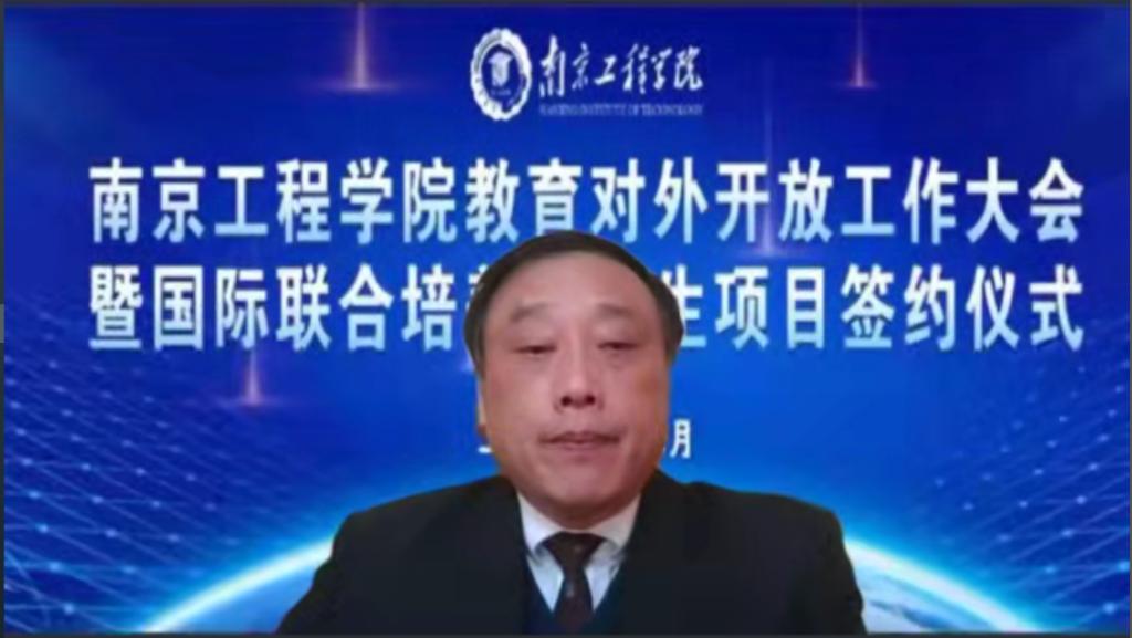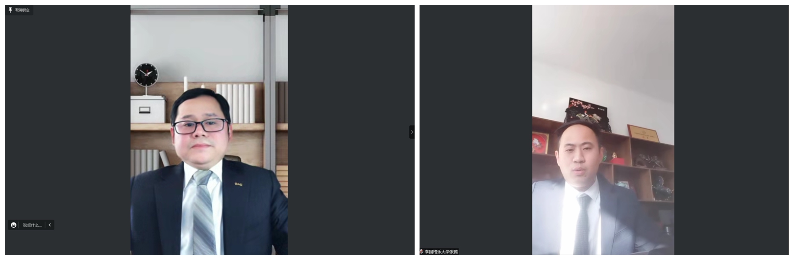 韩国又松大学驻华办公室主任高忠义先生和泰国格乐大学校长助理张腾先生代表境外友好合作高校在线发表致辞。电力工程学院、艺术与设计学院相关负责人围绕教育对外工作开展情况作交流发言。