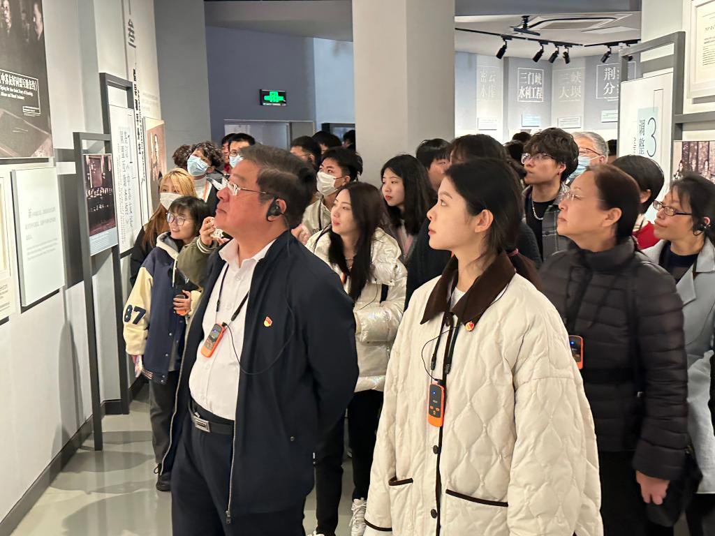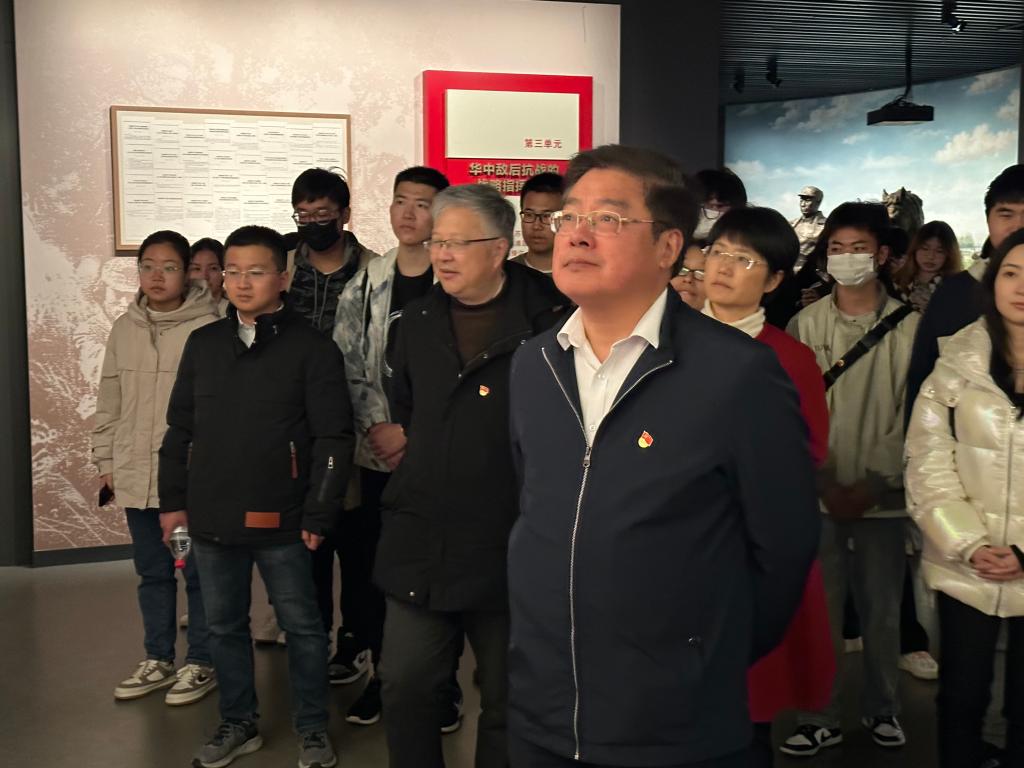 春天的周恩来纪念馆,阳光洋溢,海棠花竞,络绎不绝的瞻仰者们在树下驻足、在周恩来铜像前凝思。在史国君书记的带领下,同学们怀着无比崇敬的心情来到周恩来汉白玉雕像前敬献花篮,史书记上前整理花篮缎带,全体师生静默肃立,鞠躬致敬,深切缅怀周总理的丰功伟绩。跟着讲解员的脚步,大家走进陈列馆,一个个展厅、一件件旧物、一张张照片、一串串故事,如同时空对话,向世人述说着周总理的光辉一生,从少年树立志向,意气风发;到壮年展露风采,挥斥方遒;再到暮年指点江山,鞠躬尽瘁。师生们边看边感悟着周总理传奇而伟大的一生,边想边探寻着他“为中华之崛起而读书”的奋发根源和“为中华之明日而革命”的信念出处。参观过程中史国君书记勉励大家要以周恩来为楷模,要承周恩来“为中华之崛起而读书”之志,矢志不移听党话、跟党走,奋发图强,用奋斗的青春勇担时代使命。