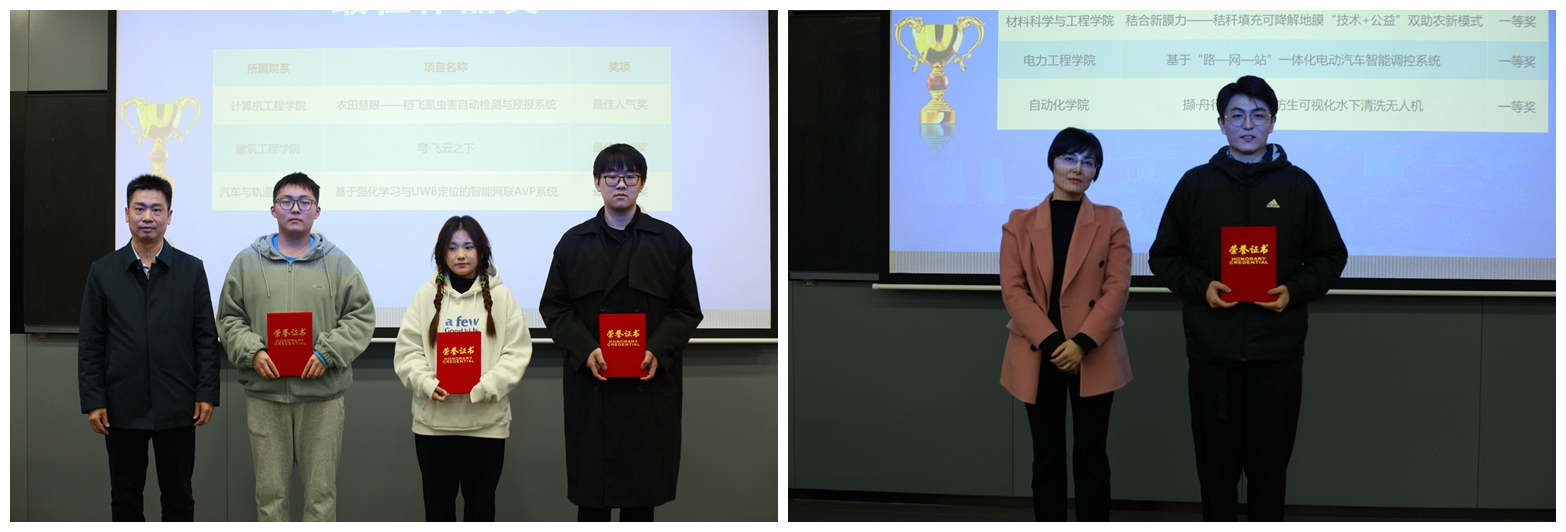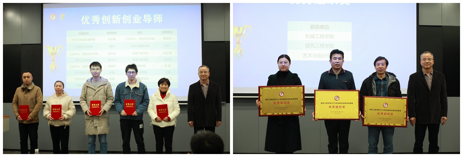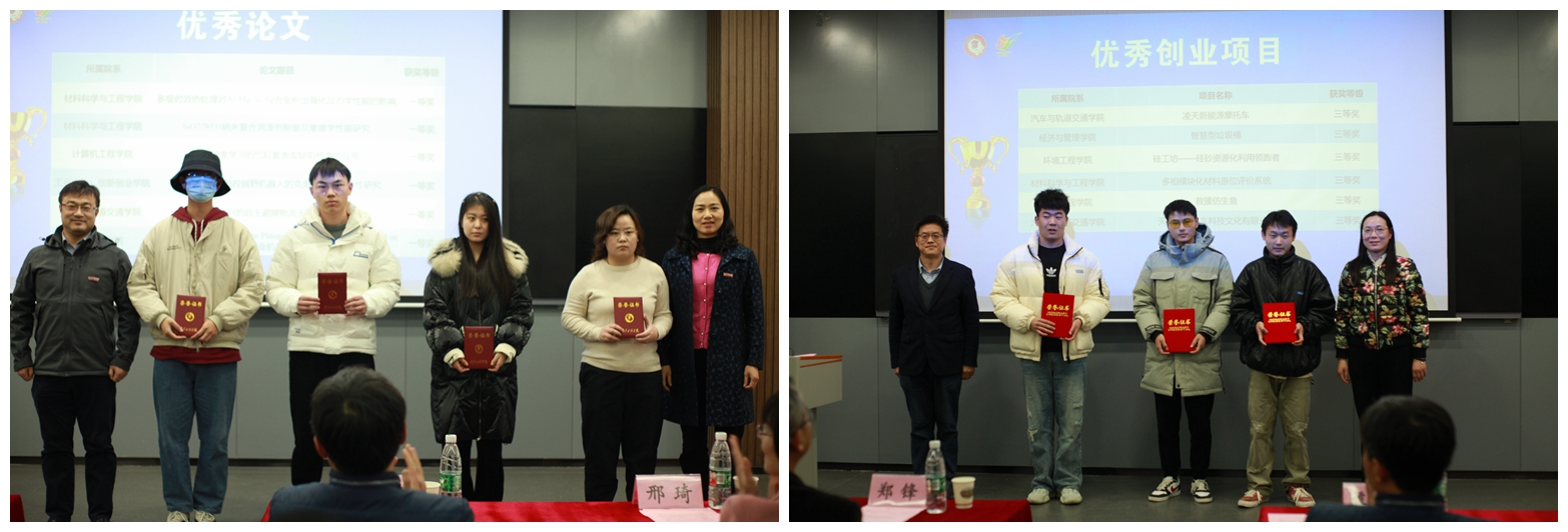 闭幕式上,各职能部门、相关学院负责人为获奖团队和个人颁奖。获奖学生代表材料科学与工程学院徐伯强同学介绍了自己的创新创业之旅,他表示这段经历使他受益匪浅,感谢学校给予的各类支持,自己将带着从此次成果展中萌发的新灵感砥砺前行。优秀导师代表能源与动力工程学院严谨老师发言,他结合自身教学经验,阐述了创新创业教育和教学科研之间的相得益彰、相辅相成,并由此和学生之间建立起来的积极、互信的师生情。成果展评委代表建筑工程学院副院长张士萍特别点评了此次参展的优秀创新项目案例,鼓励广大学生积极投身各类创新创业活动。