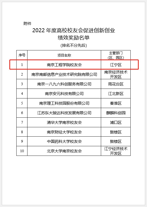 为进一步促进校地双向互动,共同发展,围绕产业链、创新链、人才链集聚全球优质校友资源助力地方经济发展,南京市科技局于2022年底组织开展高校校友会促进创新创业绩效奖励评选工作。经申请单位自主申报、属地科技主管部门择优推荐、市科技局组织评审公示等程序,10家在宁注册的国内高校校友会或授权开展校友服务工作的在宁企业法人实体获奖。beat365校友会成功入选并获得绩效奖励。