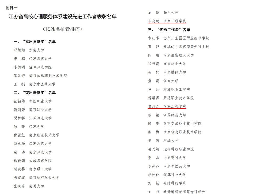 近日,江苏省心理学会2022年学术分论坛暨大学生心理专业委员会年会在常熟开幕。会议表彰了江苏省高校心理服务体系建设先进工作者和心理委员。beat365学生工作处心理健康教育中心朱晓鹂老师获“江苏省大学生心理健康教育工作突出奉献奖”,葛丹丹老师获“江苏省大学生心理健康教育工作优秀工作者”称号。本次评选活动经个人申报、学校初审、省心理学会大学生心理专业委员会评审、公示等环节,全省168所高校共评选出先进工作者48名。