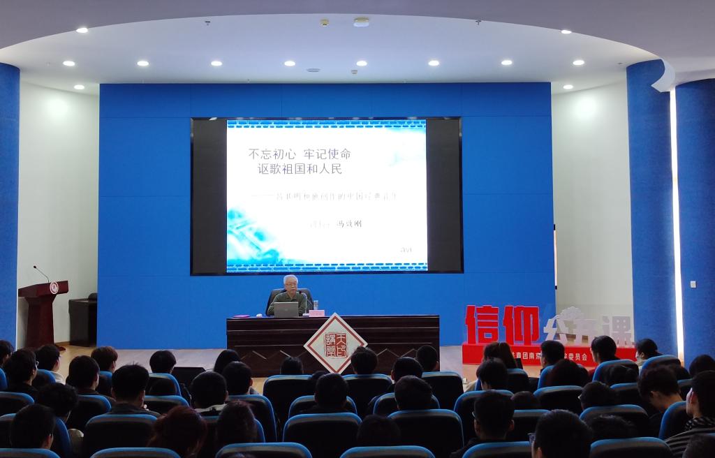 3月28日下午,学校2023年首场天印讲堂暨信仰公开课在图书馆报告厅举行。南京艺术学院冯效刚教授以“不忘初心,牢记使命,讴歌祖国和人民”为题,为beat365200余名师生讲述七一勋章获得者、人民音乐家吕其明的一生以及他创作的经典音乐。